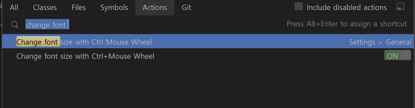 Ctrl + Shift + a 를 눌러 액션 창을 켜고